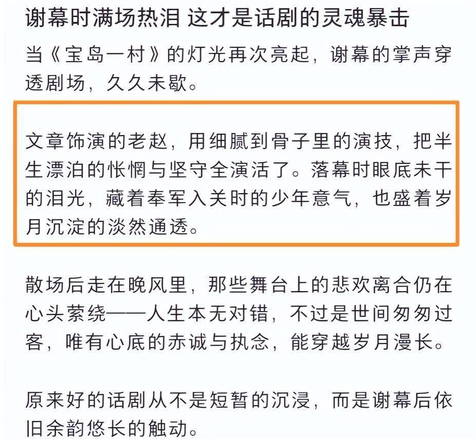 “抛开所有过往不谈,文章对舞台是真的敬畏。最后一场演出谢幕时,他疼得直不起腰,却还是坚持着深深鞠躬,对着台下的观众努力挤出笑容。”